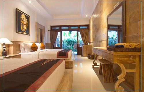Decorated to reflect Ubud Terrace Bungalow ambience and comfort. Standard Twin Room with Garden View measure 16 sq meters and provide 2 single bed, terrace with garden view, private bathroom, coffee/tea maker and mini bar