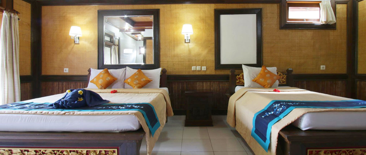 Decorated to reflect Ubud Terrace Bungalow ambience and comfort. Standard Twin Room with Garden View measure 16 sq meters and provide 2 single bed, terrace with garden view, private bathroom, coffee/tea maker and mini bar